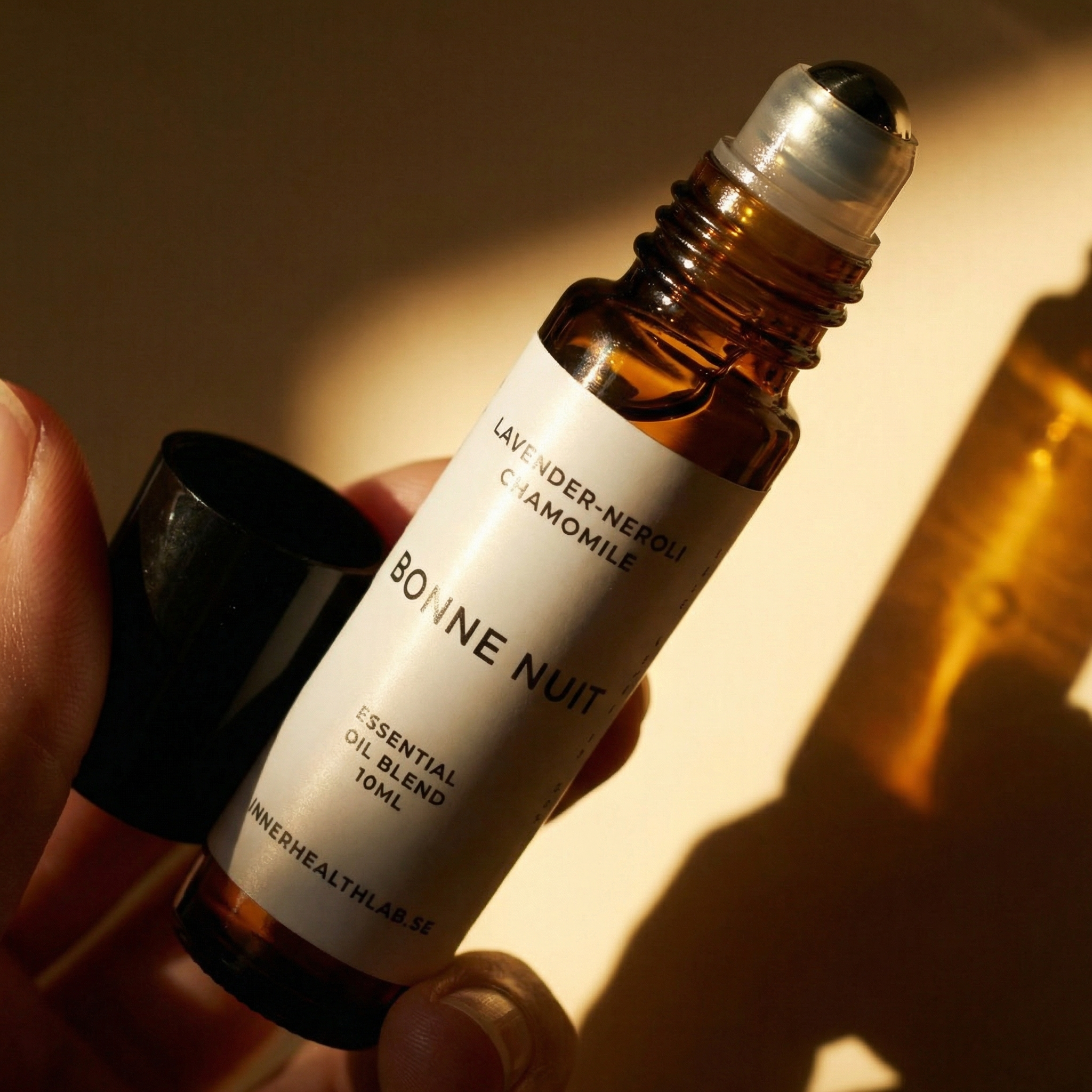 Bonne Nuit Sömnkit är en komplett kvällsritual som hjälper dig att varva ner, stilla tankarna och somna mjukt. Kitet kombinerar en exklusiv eterisk oljeblandning  med en guidad meditation för sömn – skapad för att lugna nervsystemet och förbereda kroppen för vila. Den eteriska oljeblandningen består av  lavendel, neroli och kamomillolja – tre blommor som lugnar nervsystemet.